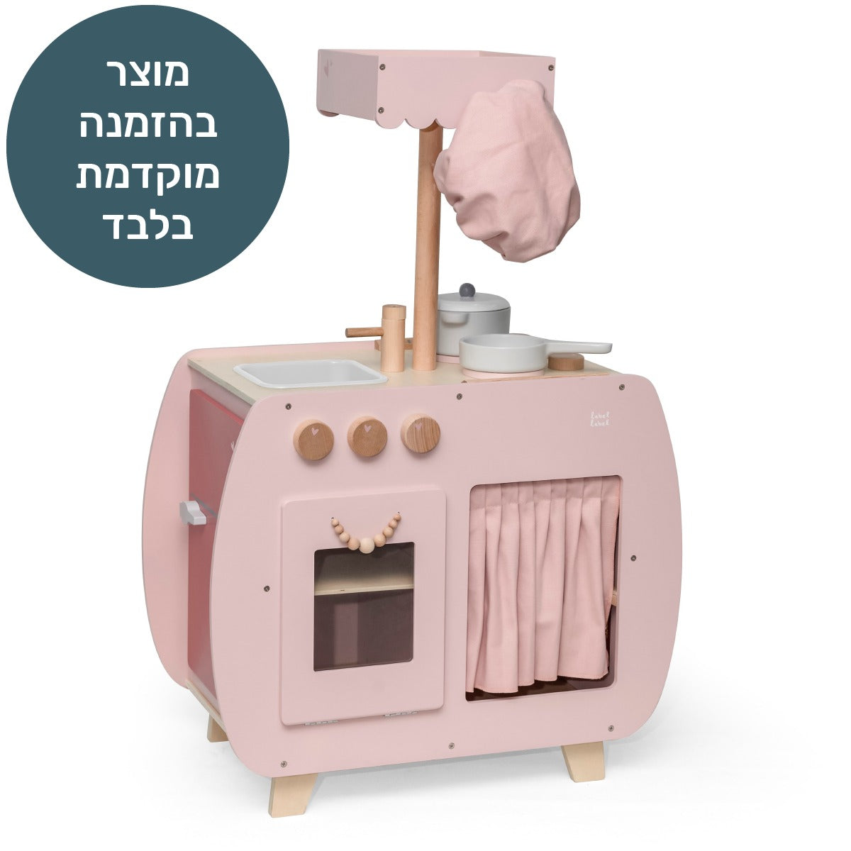 ביסטרו עץ ורוד ויפהפה, מגיע עם כלי בישול ויספק לקטנטנים שלכם שעות של משחקי דימיון, ורכישת כישורי מטבח מגיל צעיר