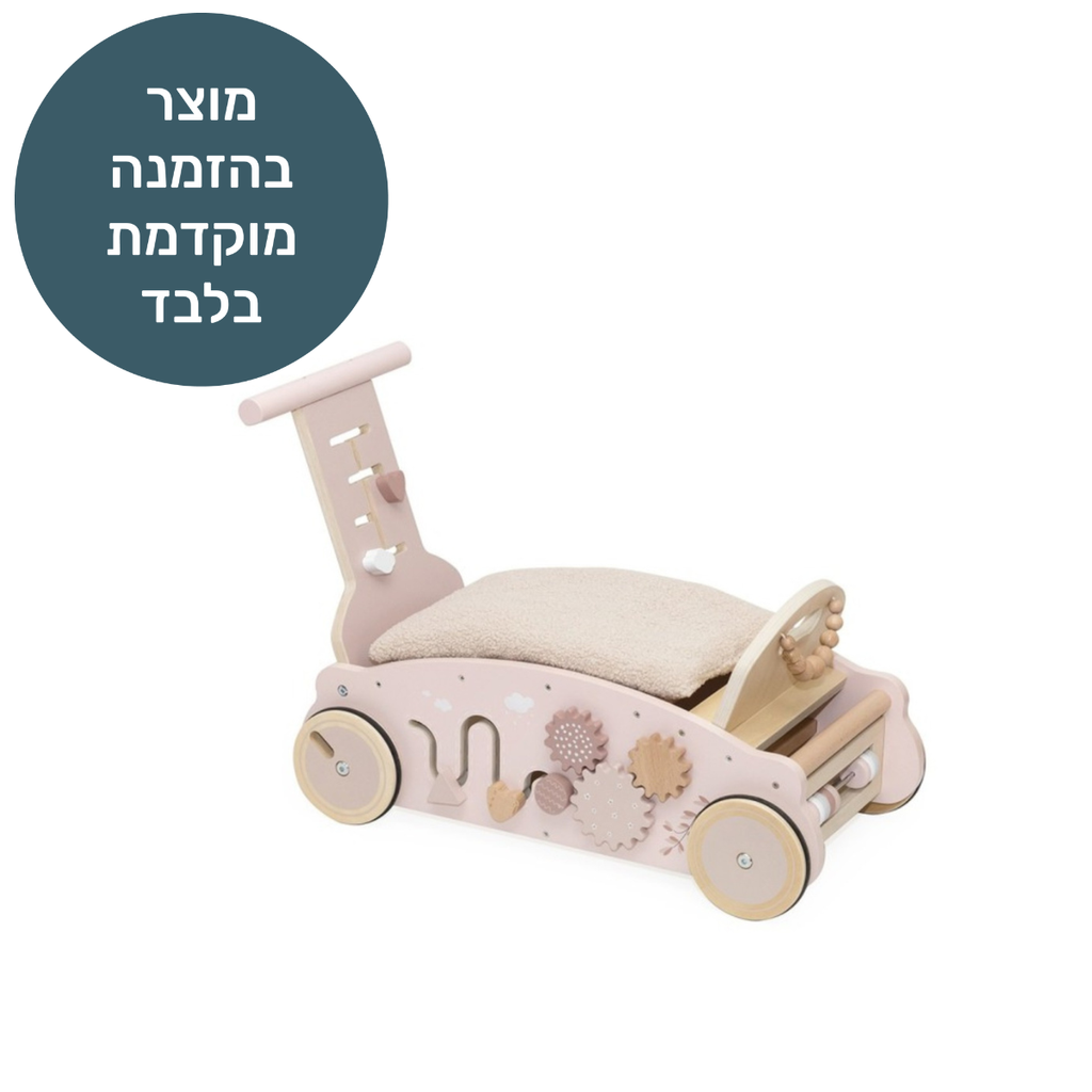 הליכון עץ לפעוטות עם קוביות בצבע ורוד