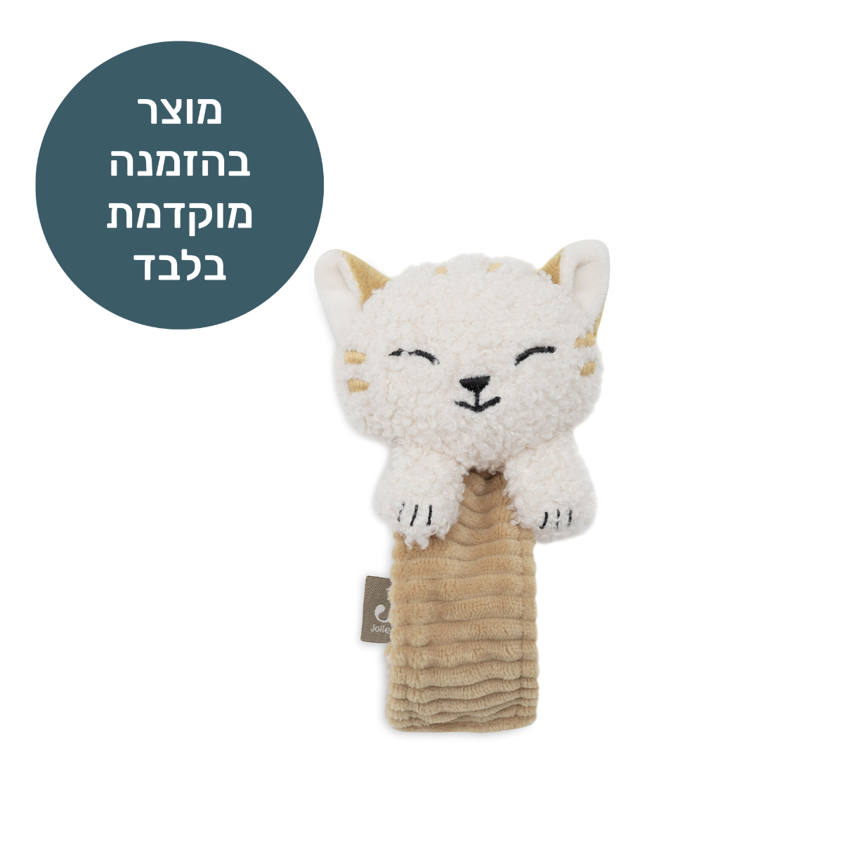 רעשן רך ונעים בעיצוב חתול חמוד, שנקשר בעדינות סביב פרק כף היד באמצעות סגירת סקוצ'.