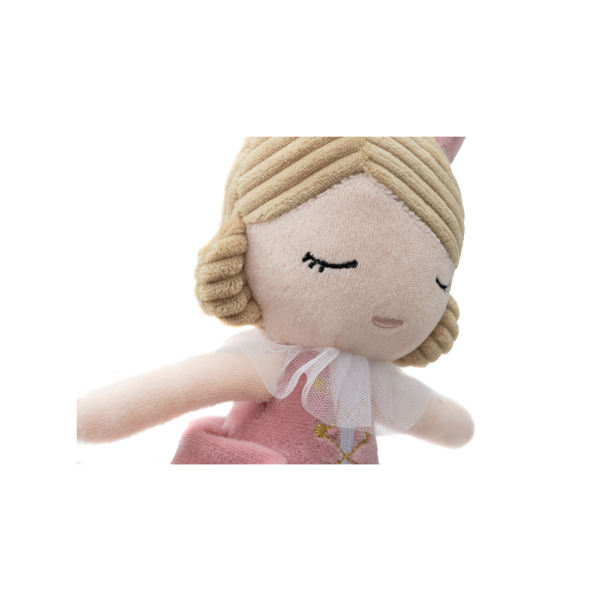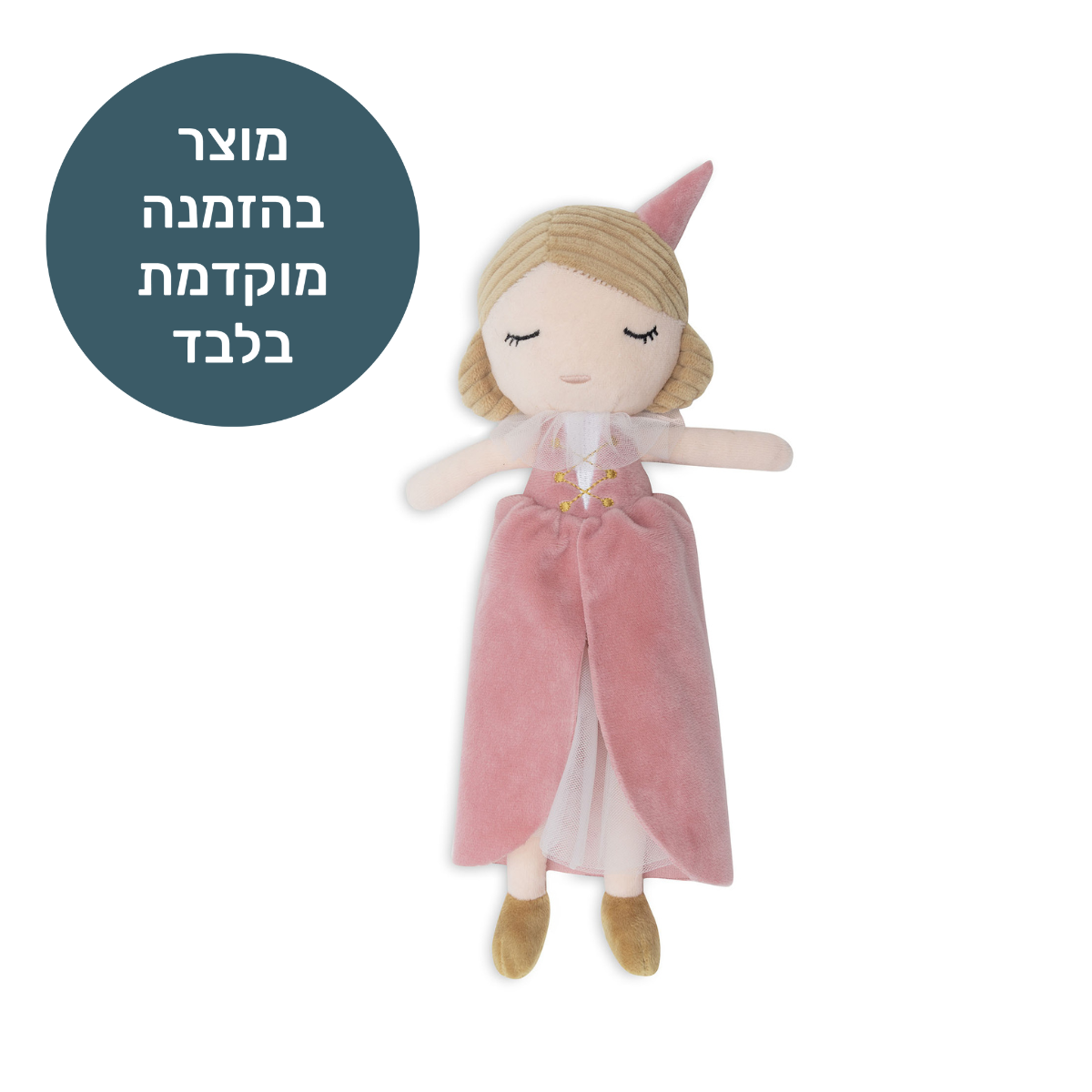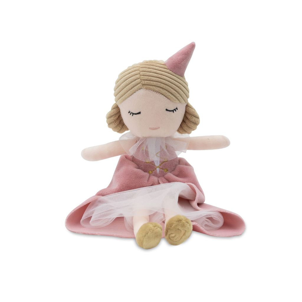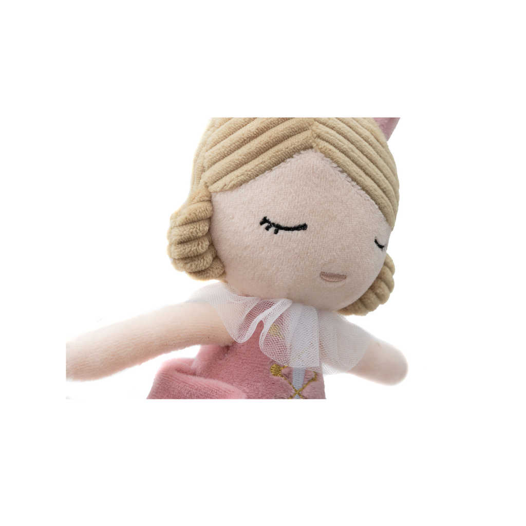 הכירו את בובת הנסיכה שלנו - בובת בד רכה, נעימה ואהובה במיוחד. מאובזרת בכובע ושמלה חגיגית עם טול - בובת הנסיכה שלנו היא בובה שכיף לחבק, לשחק איתה ולחלוק איתה כל רגע.